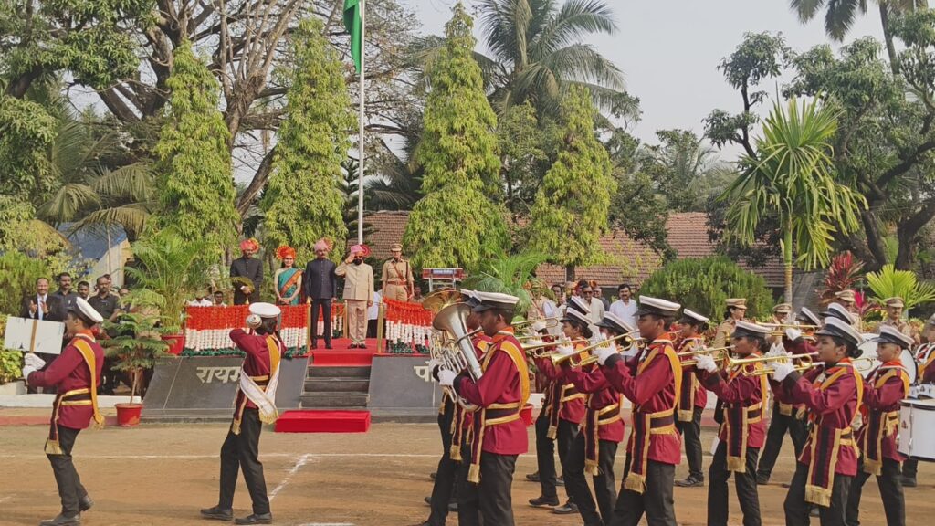 दि. 26 जानेवारी 2026 रोजी अलिबाग येथील जिल्हा पोलीस परेड ग्राउंडवर पार पडलेल्या रायगड जिल्हा शासकीय ध्वजारोहण सोहळ्यास पालकमंत्री मा. नामदार भरतशेठ गोगावले, आमदार मा. महेंद्रजी दळवी, जिल्हाधिकारी किशन जावळे, पोलीस अधीक्षक आंचल दलाल, उपजिल्हाधिकारी सुरेंद्र शिर्के व रविंद्र शेळके, जिल्हा मुख्य कार्यकारी अधिकारी स्नेहा भोसले यांच्यासह अनेक मान्यवरांची उपस्थिती होती.